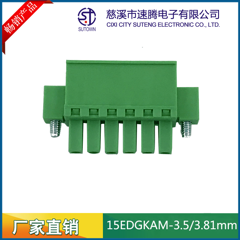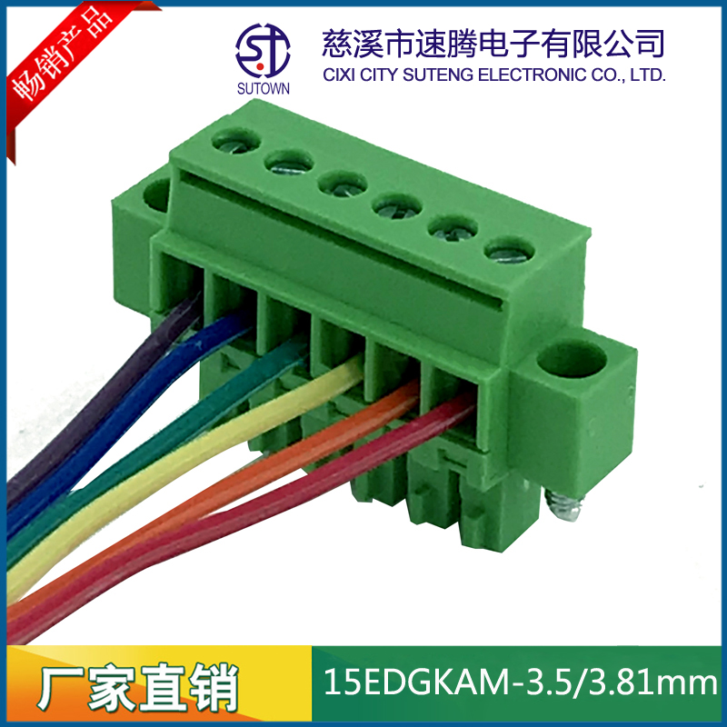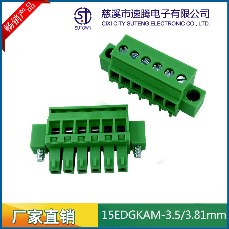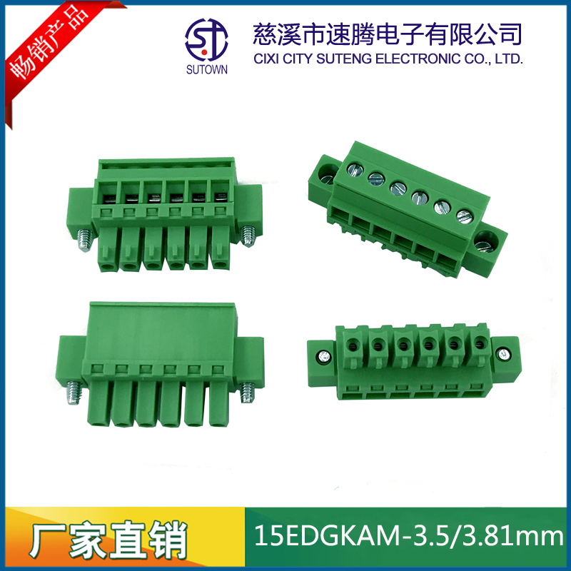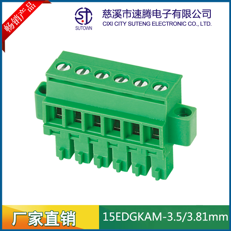 Spacing:3.5/3.81mm Material and Plating Plastic parts;PA66,UL94V-0 Cage:Brass,Tin plating Screw:M2.5,Steel,Zn Plating Contact material:Phosphor bronze,Nickel plating Electrical performance Rated voltage:300V Rated current:8A Ambient temperature:-40℃~+105℃ MAX Soldering:+250℃,5s Withstanding Voltage:AC1500V/1Min Contact resistance:20mΩ Insulation resistance:5000MΩ/1000V Wire diameter:28-12AWG 2.5mm2 Torque:0.5Nm Strip length:5-6mm