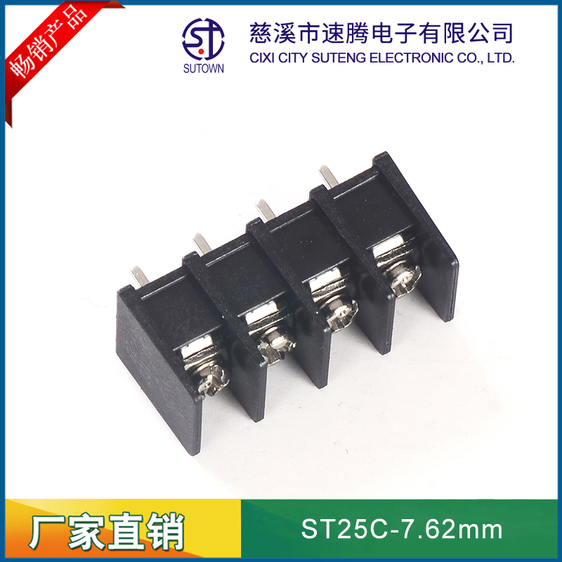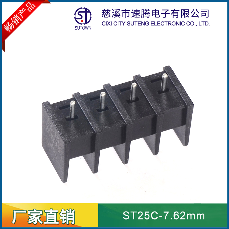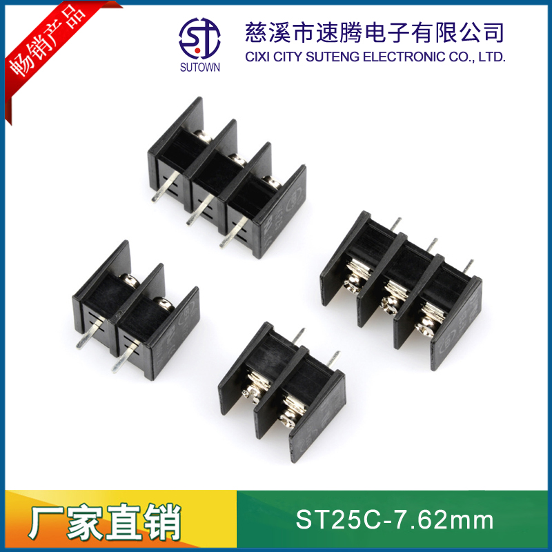 Material and Plating Spacing:7.62mm Plastic parts;PA66,UL94V-0 Welding needle:Brass,Tin plating Screw:M3.0,Steel,Nickel Plating Electrical performance Rated voltage:300V Rated current:15A Ambient temperature:-40℃~+105℃ MAX Soldering:+250℃,5s Withstanding Voltage:AC2000V/1Min Contact resistance:20mΩ Insulation resistance:500MΩ/DC500V Wire diameter:22-12AWG 2.5mm2 Torque:0.5Nm