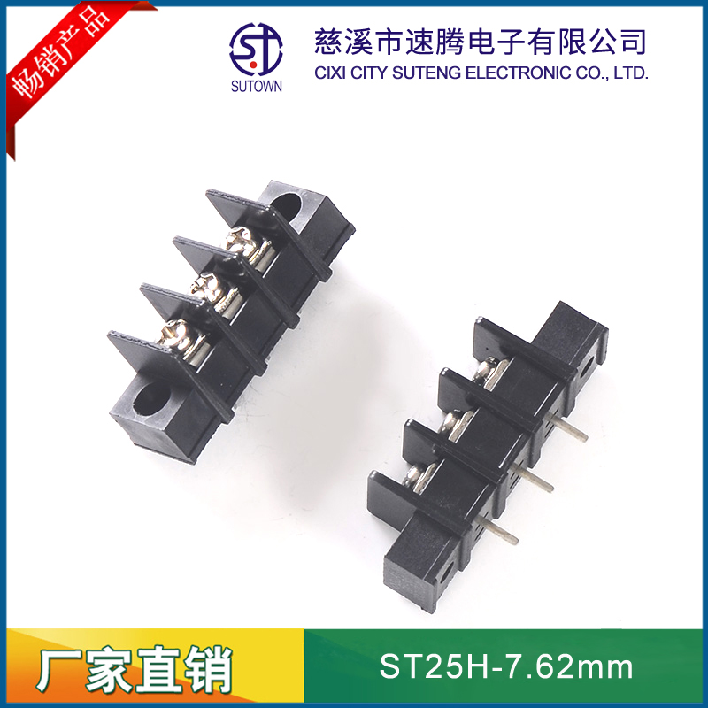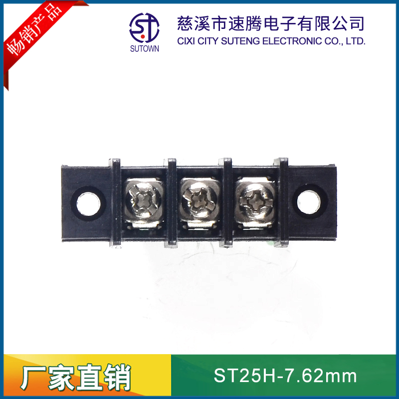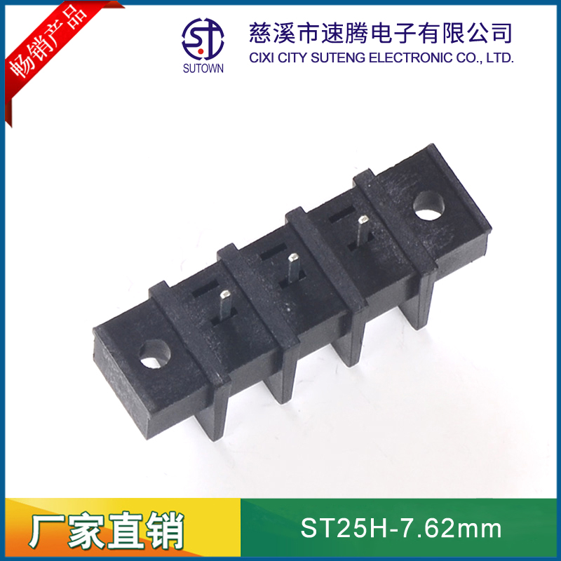 Spacing:7.62mm Material and Plating Plastic parts;PA66,UL94V-0 Welding needle:Brass,Tin plating Screw:M3.0,Steel,Nickel Plating Electrical performance Rated voltage:300V Rated current:15A Ambient temperature:-40℃~+105℃ MAX Soldering:+250℃,5s Withstanding Voltage:AC2000V/1Min Contact resistance:20mΩ Insulation resistance:500MΩ/DC500V Wire diameter:22-12AWG 2.5mm2 Torque:0.5Nm
