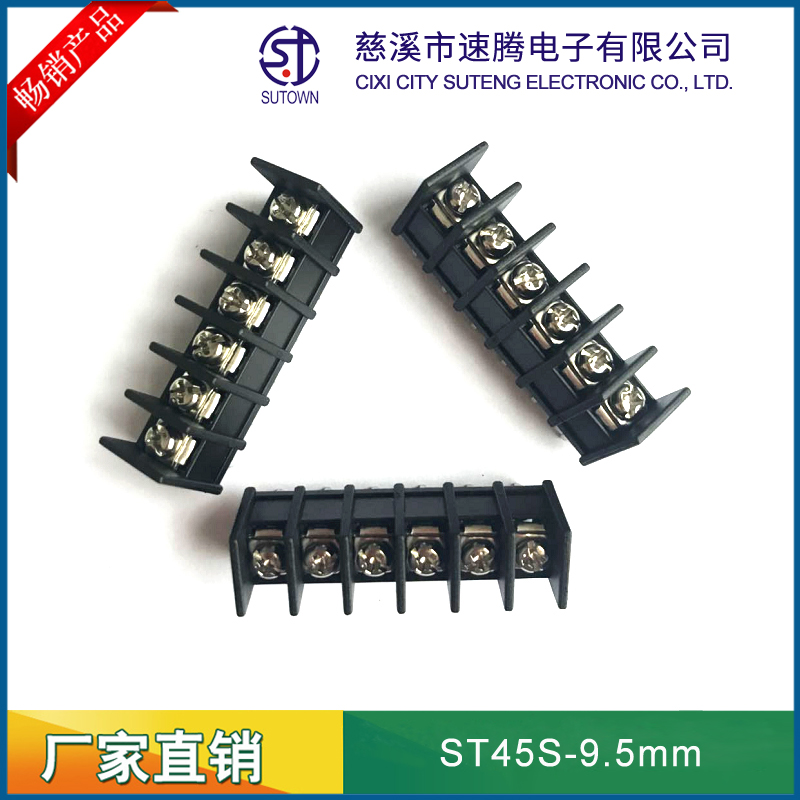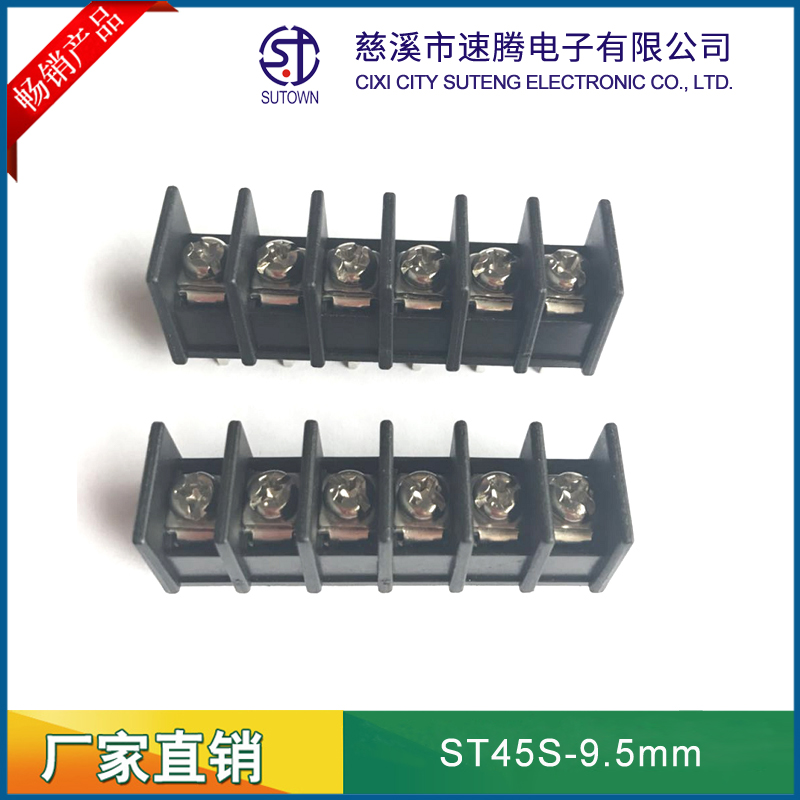 Material and Plating Spacing:9.5mm Plastic parts;PA66,UL94V-0 Welding needle:Brass,Tin plating Screw:M4.0,Steel,Nickel Plating Electrical performance Rated voltage:300V Rated current:25A Ambient temperature:-40℃~+105℃ MAX Soldering:+250℃,5s Withstanding Voltage:AC2000V/1Min Contact resistance:20mΩ Insulation resistance:500MΩ/DC500V Wire diameter:22-12AWG 4.0mm2 Torque:1.2Nm