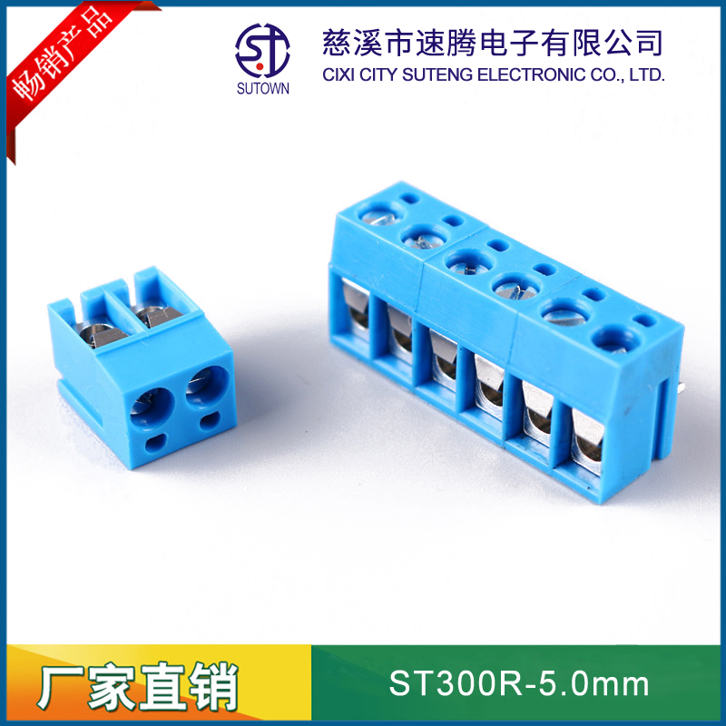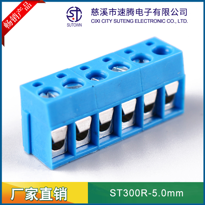 Spacing:5.0mm Material and Plating Plastic parts;PA66,UL94V-0 Welding needle:Brass,Tin plating Screw:M2.5,Steel,zinc Plating Square box:Brass,Nickel plating Electrical performance Rated voltage:300V Rated current:10A Contact resistance:20mΩ Insulation resistance:5000MΩ/1000v Wire diameter:22-14AWG 2.5mm2 Withstanding Voltage:AC1500V/1Min Mechanical properties Ambient temperature:-30℃~+120℃ MAX Soldering:+250℃,5s Torque:0.5Nm Strip length:4.5-5mm
