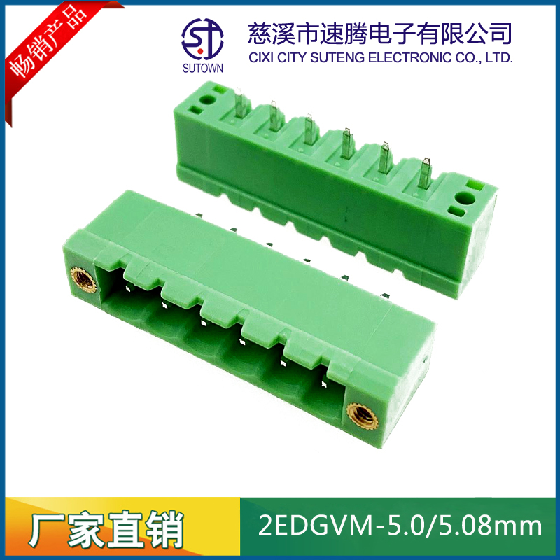 | Material and Plating Spacing:5.0/5.08mm Plastic parts;PA66,UL94V-0 Cage:Brass,Tin plating Screw:M3.0,Steel,Zn Plating Terminal:Phosphor bronze,Nickel plating Electrical performance Rated voltage:300V Rated current:15A Ambient temperature:-40℃~+105℃ MAX Soldering:+250℃,5s Withstanding Voltage:AC2500V/1Min Contact resistance:20mΩ Insulation resistance:5000MΩ/1000V Wire diameter:28-12AWG 2.5mm2 Torque:0.4Nm Strip length:7-8mm