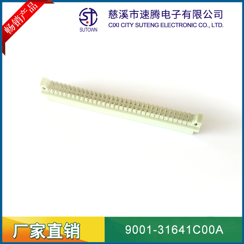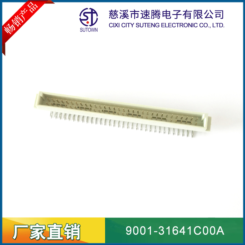 品名:歐式插座連接器型號(hào):9001-31641C00A 規(guī)格:64pin屬性:直針公座 90°間距:2.54間距