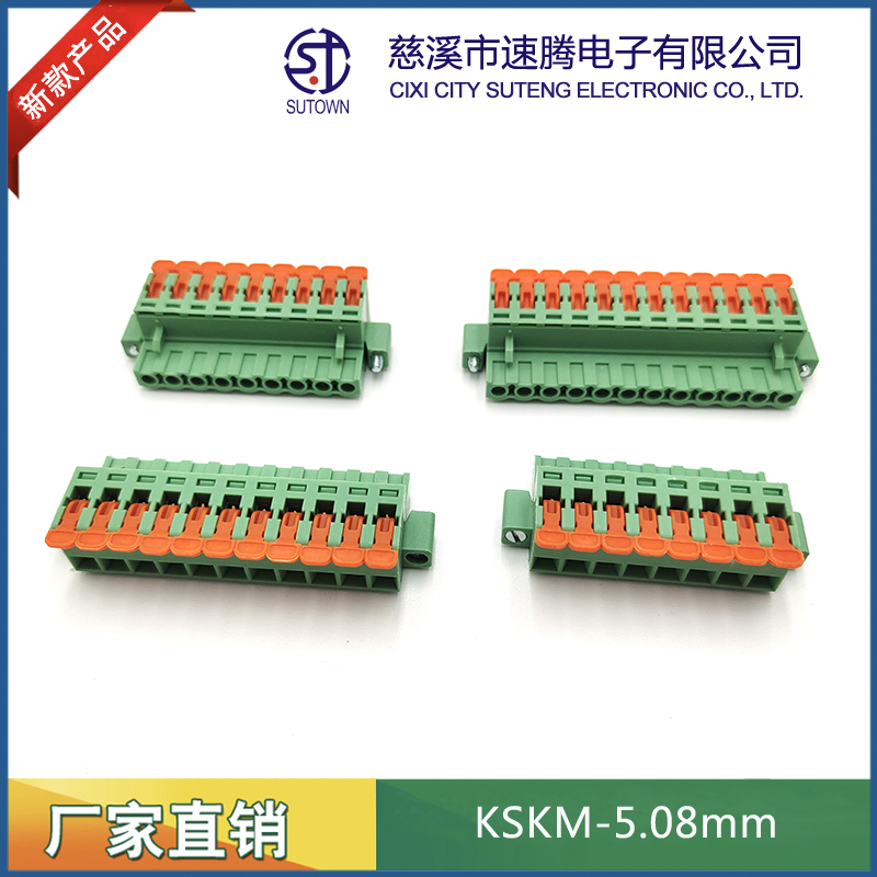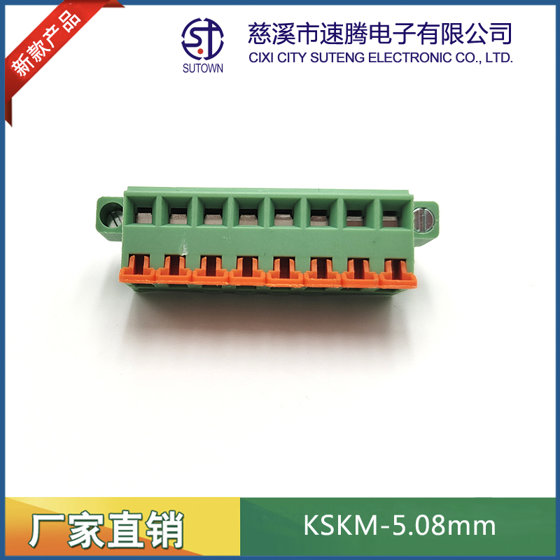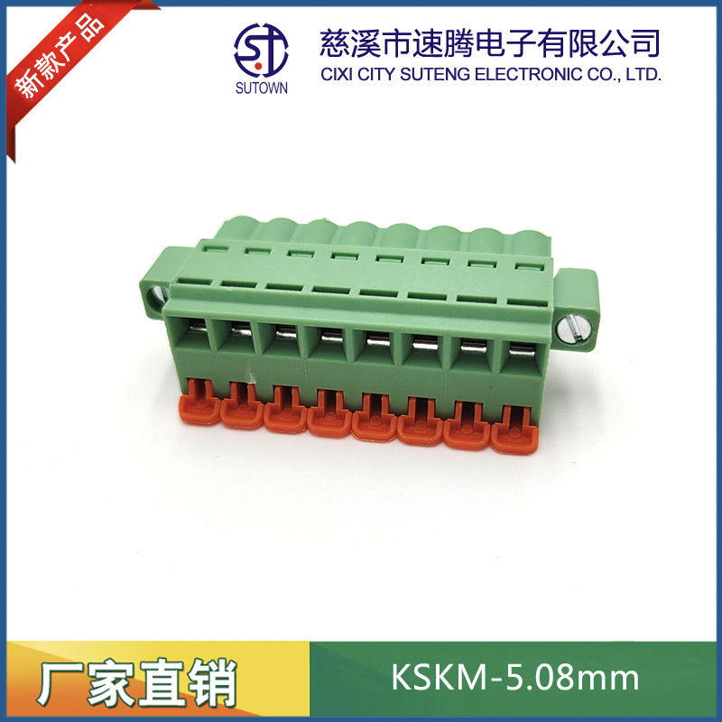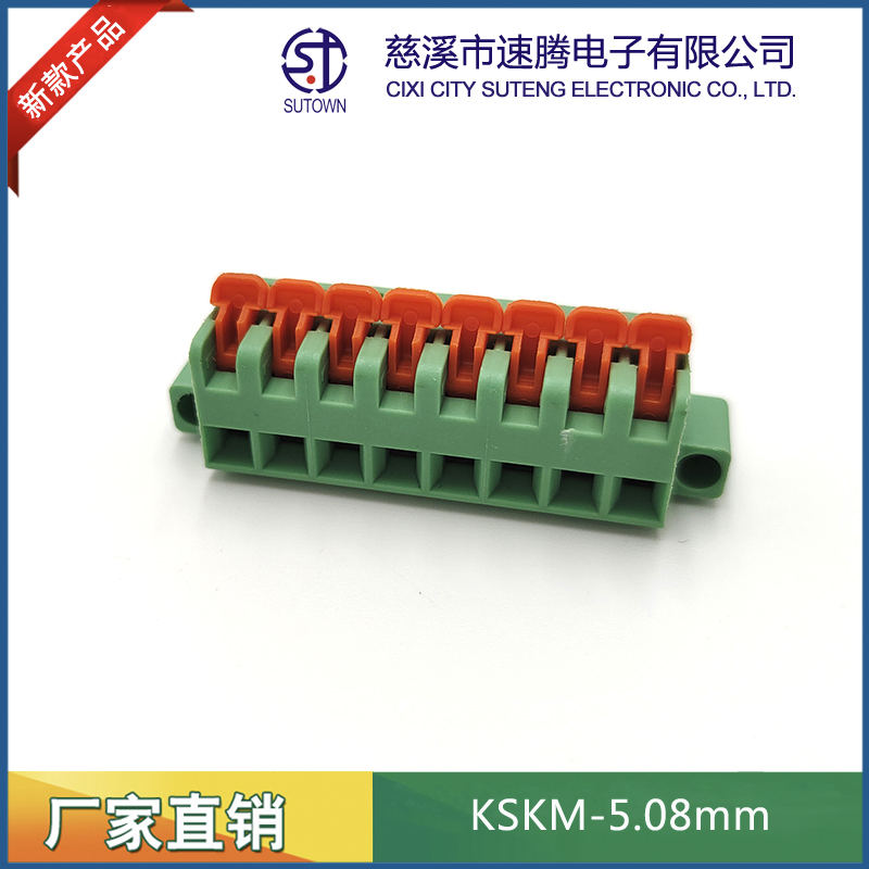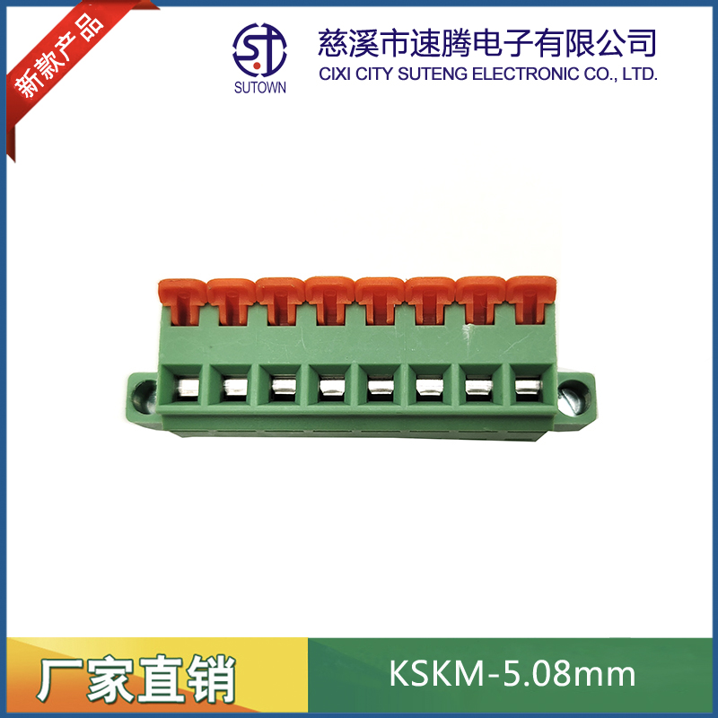 型號:KSKM間距:5.08mm極數(shù):2-24P電氣性能 額定電壓:300V額定電流:15A使用線徑:24-12WG(2.5mm2)環(huán)境溫度:-40℃~+105℃瞬時(shí)溫度:+250℃,5s耐電壓:AC4000V/Min接觸電阻:20MΩ絕緣電阻:5000MΩ/1000V扭矩:0.4Nm剝線長度:7-8mm材質(zhì)和電鍍 塑件:PA66,UL94V-0觸點(diǎn)材料:磷青銅,鍍鎳